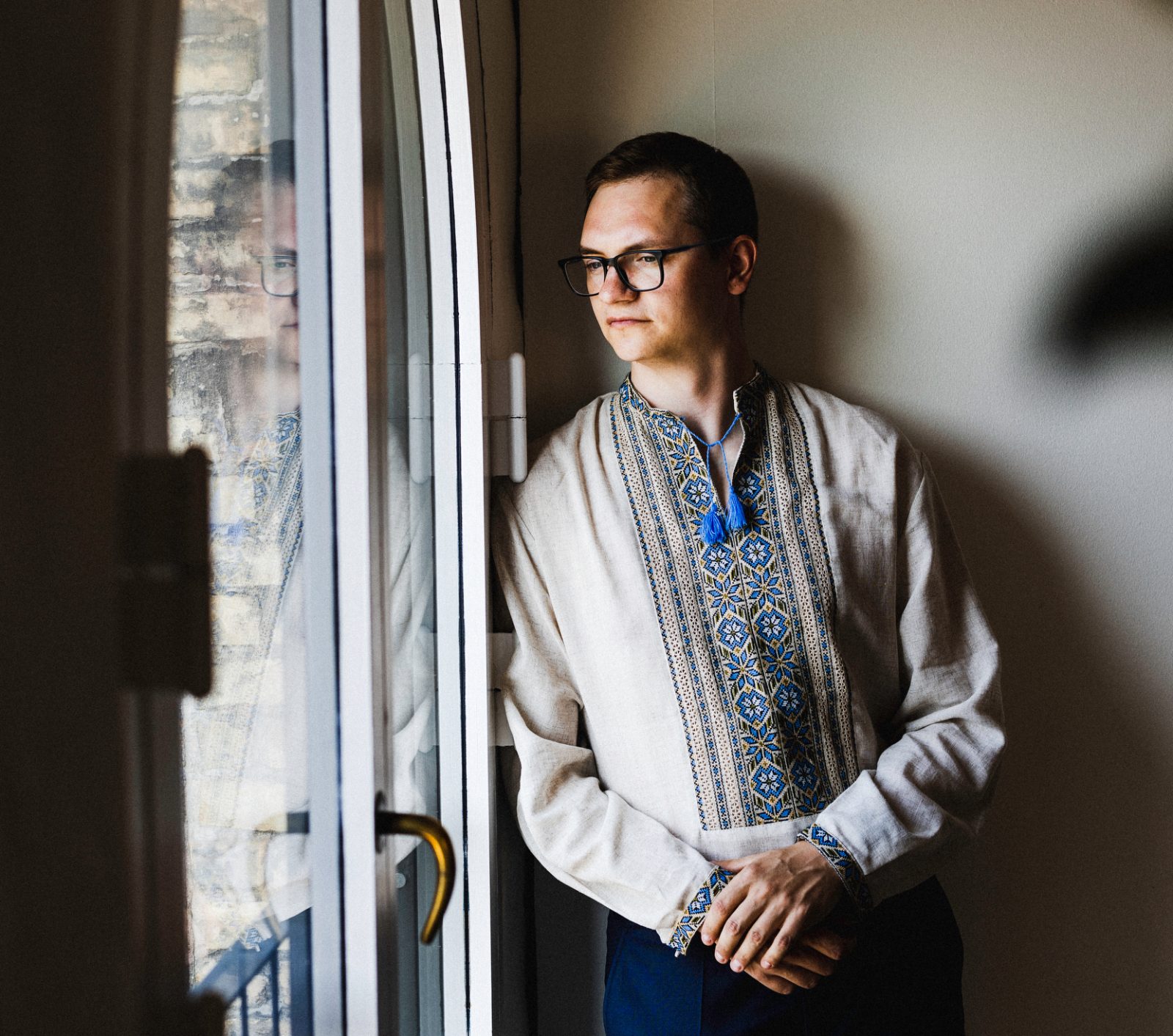 Anton wearing a traditional Ukranian suit.
